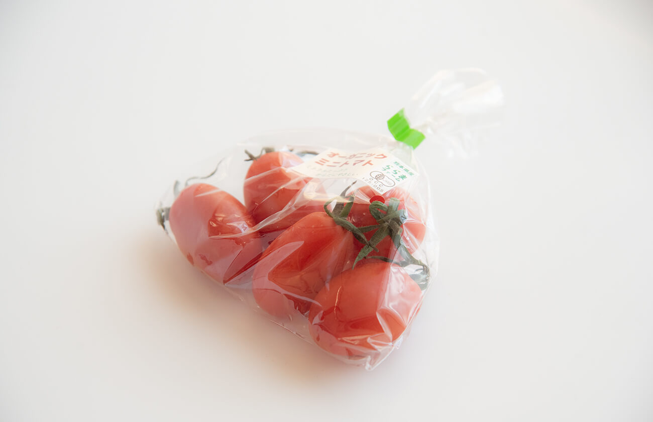 熊本県山都町の生産者グループ肥後やまとより、農薬・化学肥料不使用のオーガニックミニトマト(アイコ)が届きました。アイコという品種は、生でも加熱しても甘みが強いミニトマトで、果肉が厚くしっかりしていてゼリー部分が少ないのが特徴。酸味が少なく、びっくりするほど甘くてジューシー。まるでフルーツのようなミニトマトです。サラダをはじめ、色々な料理にお使いいただけます。お弁当にもおすすめ。