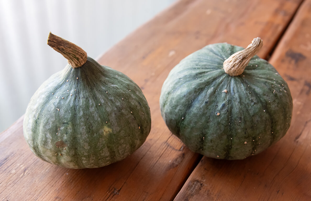 先が尖ったもの、平たいものと個々に形の違いがあります。品種がわからなかったので調理してみましたが、煮物にできそうなホクホクしたタイプのかぼちゃでした。